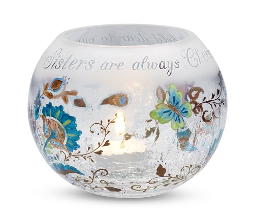 Perfectly Paisley Sister Crackled Glass Candle Holder, 5-Inch Round, Inspirational Saying