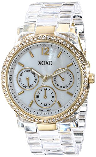 XOXO Women's XO5527 Clear Bracelet with Rhinestones on Gold Case Watch