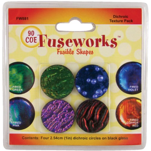 Fuseworks Dichroic Texture Fusible Glass Shapes, 1-Inch Round Disks, Assorted Colors, 4-Pack