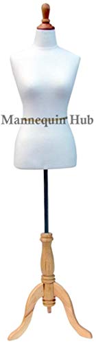 White Female Mannequin Dress Form Size 2-4 Small 33" 24" 34" (On Maple Tripod Stand) (French Series)