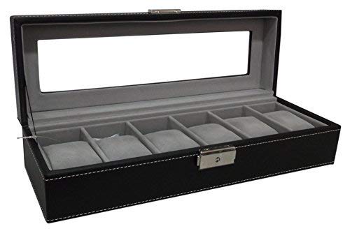 Sorbus Watch Box 6 Mens Black Leather Display Plexi Glass Top Jewelry Case Organizer