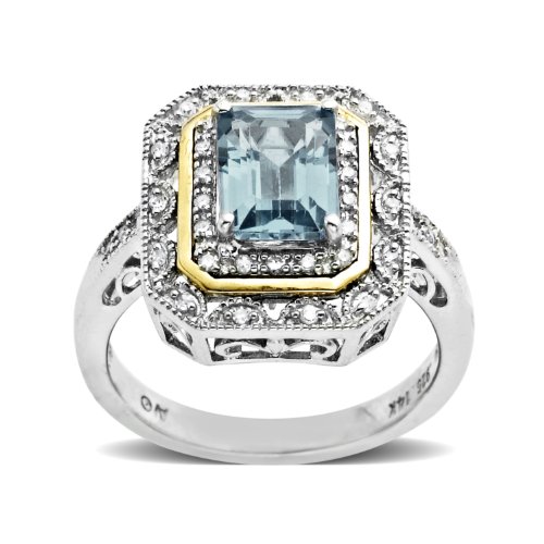 Sterling Silver and 14k Yellow Gold Emerald Cut Created Emerald and Diamond Accent Art Deco-Style Ring