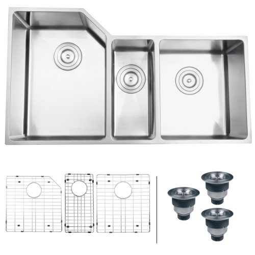 Ruvati RVH8550 Undermount 16 Gauge 34" Kitchen Sink Triple Bowl, Stainless Steel