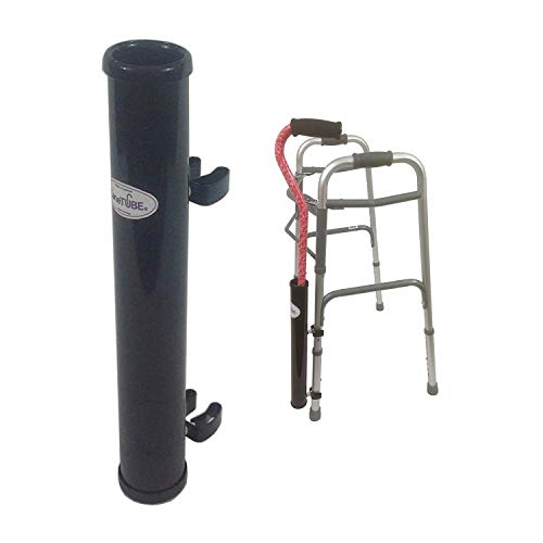 CaneTUBE® Cane Holder for Walker, Rollator and Wheelchair (Black), Walking Cane Attachment for Walkers, Rollators and Wheelchairs with Snap-On Clips and Strap