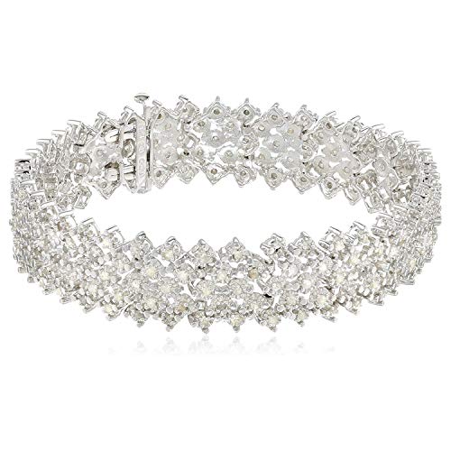 Rhodium-Plated .925 Sterling Silver 3 Cttw Diamond Zig Zag 1/2" Wide Tennis-Style Bracelet (I-J Color, I2-I3 Clarity), 7-1/4"