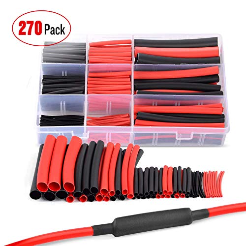 Nilight 270PCS 3:1 Heat Shrink Tubing Double-wall Adhesive Lined Shrink Wrap Tubing Assortment Kit 6 Size 2 Color KIT Black Red, 2 years Warranty