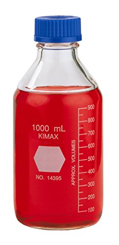 Kimble 14395-1000 Borosilicate Glass GL-45 Media/Storage Bottle With Blue Polypropylene Screw Thread Cap, 1000mL (Case of 10)