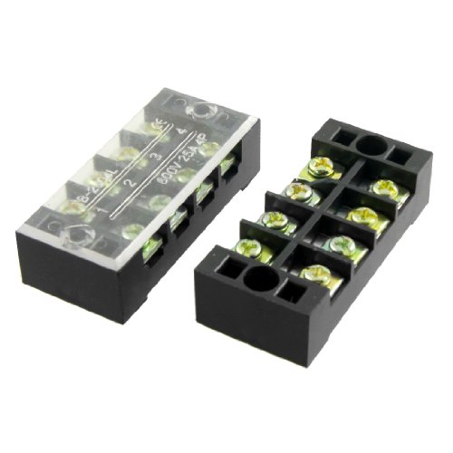 uxcell 5 Pcs Dual Row 4 Position Covered Screw Terminal Strip 600V 25A