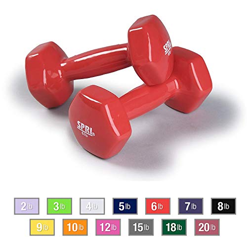 SPRI Dumbbells Deluxe Vinyl Coated Hand Weights All-Purpose Color Coded Dumbbell for Strength Training (Set of 2) (Available in 1-10 Pounds, 12, 15, 18 & 20 Pounds)