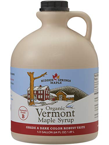 Hidden Springs Organic Vermont Maple Syrup, Grade A Dark Robust (Formerly Grade B), 64 oz, 1 Half gallon, Family Farms, BPA-free Jug