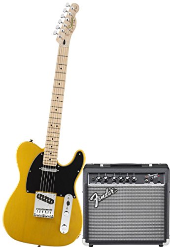 Squier by Fender Affinity Tele Beginner Electric Guitar Pack with Fender FM 15G Amplifier, Clip-On Tuner, Cable, Strap, Picks, and gig bag - Butterscotch Blonde