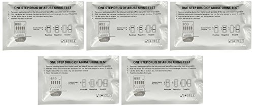 The Home Drug Test - 5 Individually Wrapped 6 Panel Multi Screen Urine Drug Tests - Each Test Screens For 6 Different Drug Types Including Cocaine / Crack, Heroin / Morphine, Marijuana, Meth, Amphetamine, Adderall, Benzos, Xanax