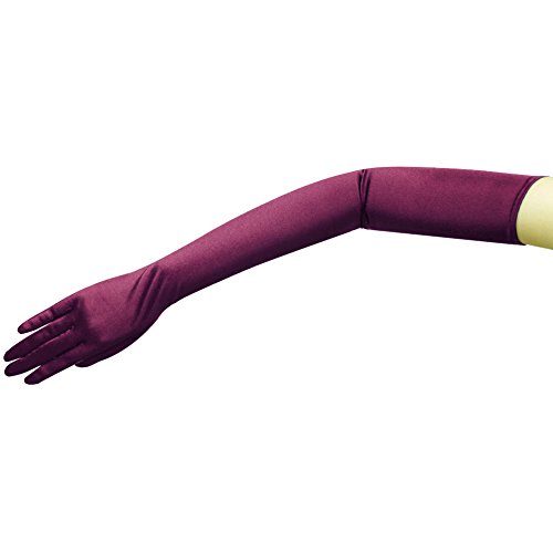 ZaZa Bridal 23.5" Long Shiny Stretch Satin Dress Gloves Opera Length-Plum