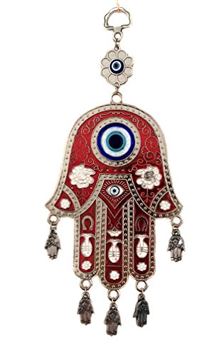 Betterdecor Red Hamsa Evil Eye Protection Almulet Hanging Decoration (with a Pouch)