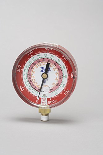 Yellow Jacket red pressure gauge 3-1/8" high side R22/R404A/R410A