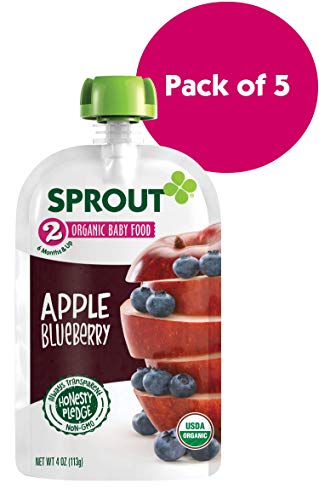 Sprout Organic Stage 2 Baby Food Pouches, Apple Blueberry, 4 Ounce (Pack of 5)