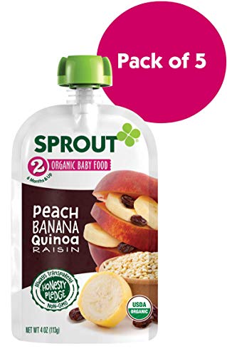 Sprout Organic Stage 2 Baby Food Pouches, Peach Banana Quinoa Raisin, 4 Ounce (Pack of 5)
