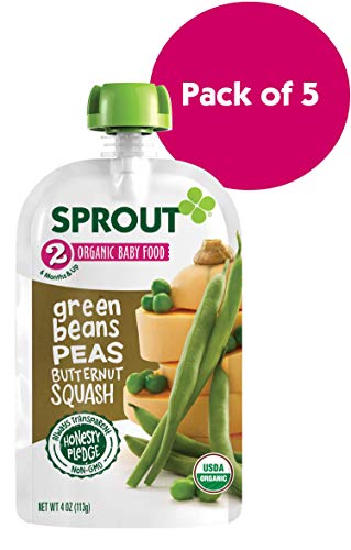 Sprout Organic Stage 2 Baby Food Pouches, Green Beans Peas Butternut Squash, 4 Ounce (Pack of 5)