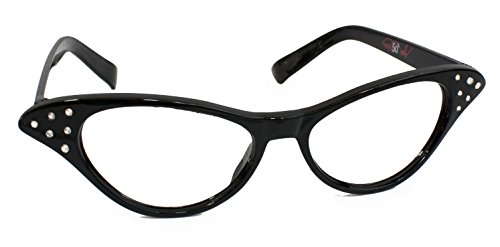 Hip Hop 50s Shop Womens Cat Eye Rhinestone Glasses, Black