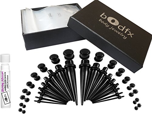Bodfx 36 Piece Black UV Acrylic Ear Stretching Kit + Piercing Balm. Tapers & Plugs. 14g-00g