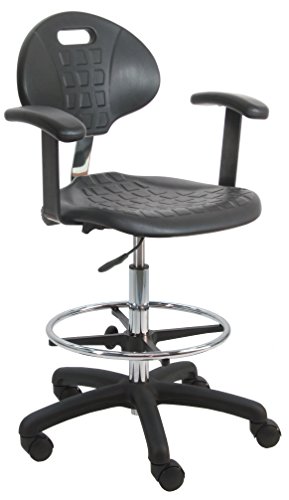 BenchPro Deluxe Polyurethane Chair/Stool with Nylon Base, Footring and Fixed Armrest, 450 lbs Capacity, 18.5" Width x 18" Depth, 23"-33" Seat Height, Black