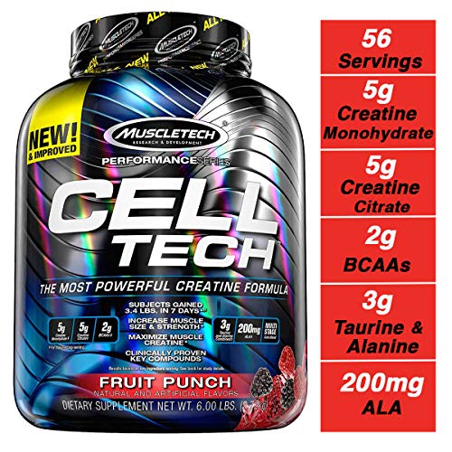 MuscleTech Cell Tech Creatine Monohydrate Formula Powder, HPLC-Certified, Improved Muscle Growth & Recovery, Fruit Punch, 56 Servings (5.95lbs)