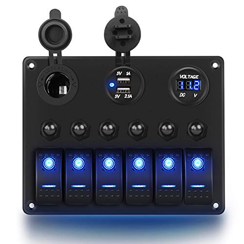 Nilight 6 Gang Toggle Rocker Switch Panel with Digital Voltmeter and Cigarette Socket Double USB Power Charger Adapter Overload Protection,2 Years Warranty (Rocker Switch Panel)