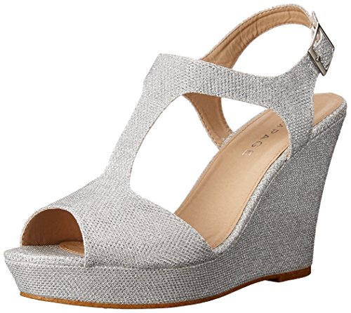 Rampage Women's Candelas Platform Ankle Strap Dress Wedge Sandal, Silver , 9 M US