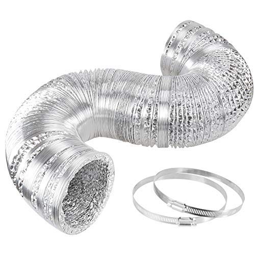 iPower 6 Inch 25 Feet Non-Insulated Flex Air Aluminum Ducting Dryer Vent Hose for HVAC Ventilation, 2 Clamps included