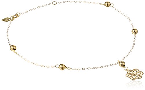 14k Yellow Gold Cable Anklet with Flower and Beads, 10"