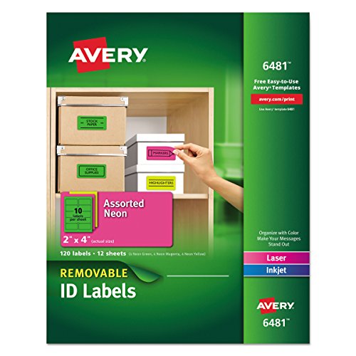 Avery Multipurpose Labels, Removable, Assorted Neon, 2 x 4 Inches, Pack of 120 (6481)