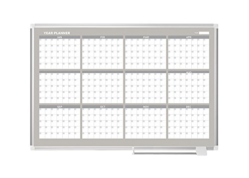 MasterVision Planning Board Magnetic Dry Erase 12 Month Calendar Board with Aluminum Frame, 36" x 48"