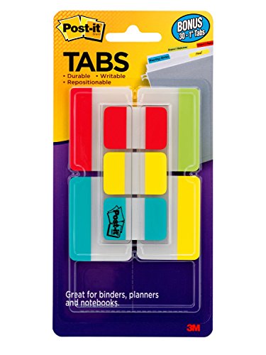 Post-it Tabs Value Pack, Assorted Primary Colors, Durable, Writable, Repositionable, Sticks Securely, Removes Cleanly, 1 in. and 2 in. Sizes, 114 Tabs/Pack, (686-VAD2)
