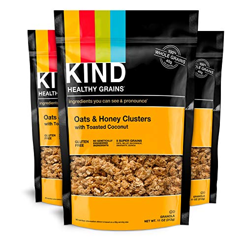Kind Healthy Grains Clusters, Oats and Honey with Toasted Coconut Granola, Gluten Free, 11 Ounce Bags, 3 Count