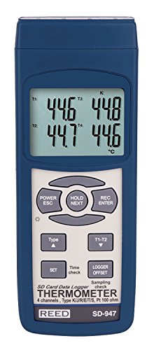 REED Instruments SD-947 SD Series Thermocouple Thermometer, Data Logger, 4 Channel, Type K, J, R, S, E, T and RTD