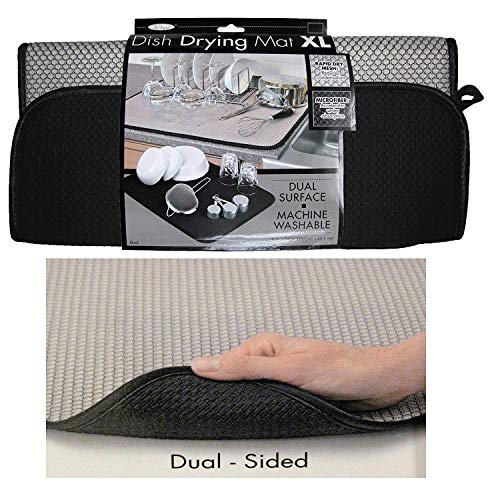 The Original Dish Drying Mat XL Microfiber, Absorbent, Machine Washable, Fast Drying 18X24 DUAL SURFACE (BLACK)