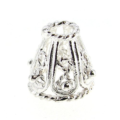 4 pcs .925 Sterling Silver Bali Filigree Flower Bead Cone Cap 8mm / Findings/Bright