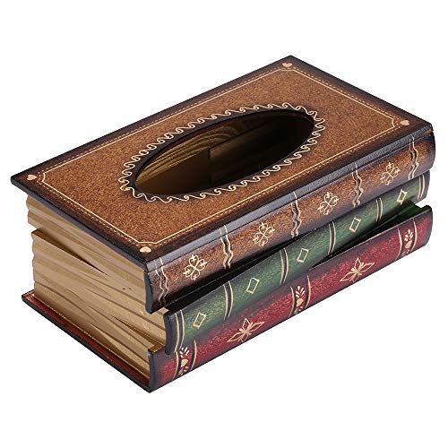GREEN FABWOOD Elegant Hand Crafted Wooden Scholar's Antique Book Tissue Box Dispenser