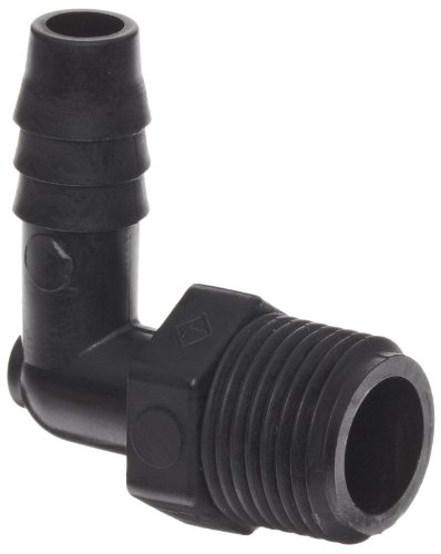 Thogus Polyethylene Tube Fitting, 90 Degree Elbow, Black, 1/8" NPT Male x 3/8" Barbed (Pack of 10)