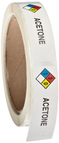 Roll Products 163-0003 Litho Removable Adhesive HMIG Label with 4 Color Imprint, Acetone, 2-1/2" Length x 3/4" Width, For Identifying and Marking, White (Roll of 250)