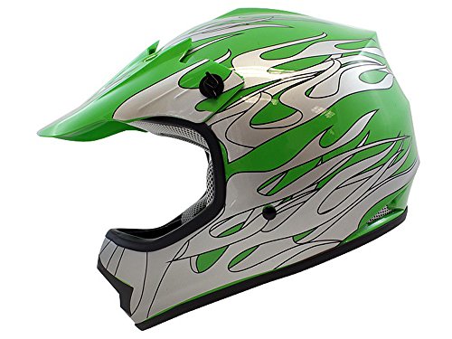 Youth Kids Green Flame Motocross ATV Mx Off-road Dirt Bike Helmet DOT (Large)