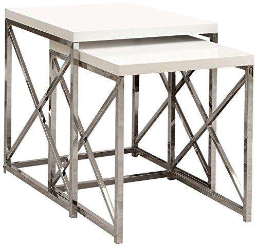 Monarch Specialties I 3025, Nesting Table, Chrome Metal, Glossy White, Table Set, 2 pcs