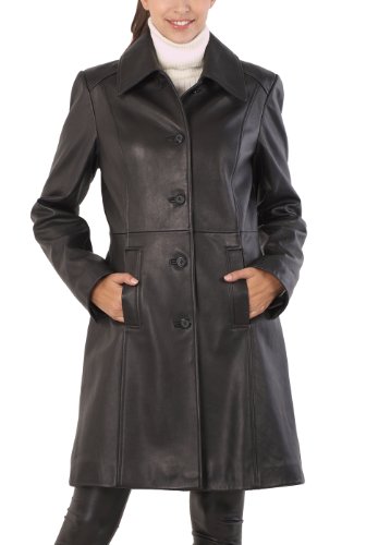 BGSD Women's Amber New Zealand Lambskin Leather Walking Coat Black Plus Size 2X