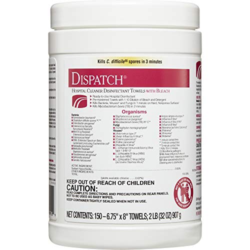 Dispatch Hospital Cleaner Disinfectant Towels with Bleach, 150 Count Canister