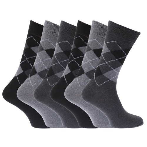 Mens Pattern Cotton Blend Argyle Socks (Pack Of 6)