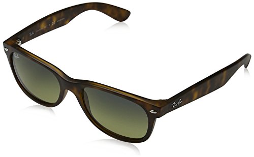 Ray-Ban RB2132 New Wayfarer Polarized Sunglasses, Matte Tortoise/Polarized Green Gradient, 52 mm