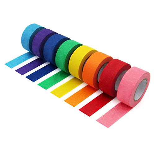 Colored Masking Tape,Colored Painters Tape for Arts & Crafts, Labeling or Coding - Art Supplies for Kids - 8 Rolls Rainbow Masking Tape 1 Inch x 16.5 Yards (2.5cm X 15m)