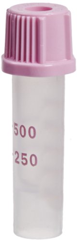 BD 365974 Plastic Capillary Blood Collection Microtainer Tube with Dipotassium EDTA Beadless Additive Lavender Microgard Closure, 250-500 microliter Capacity, 8mm ID (Case of 200)