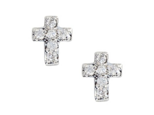 Finejewelers Sterling Silver Childrens Cross Earrings with White CZ's