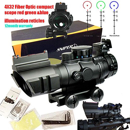 Sniper Tactical 4x32 Prismatic Glass Crosshair Reticle Scope w/ Fiber Optic Sight